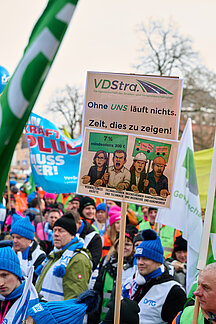 Vor Beginn der dritten Verhandlungsrunde mit der Autobahn GmbH in Berlin machen die Beschäftigten nochmal lautstark auf ihre Forderungen aufmerksam.
